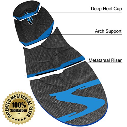 Patented Metatarsal Riser, Arch Support, and Deep Heel Cup help relieve common foot pain, flat feet pain, arch pain, heel pain, plantar fasciitis, shin splints, metatarsalgia & Morton's Neuroma