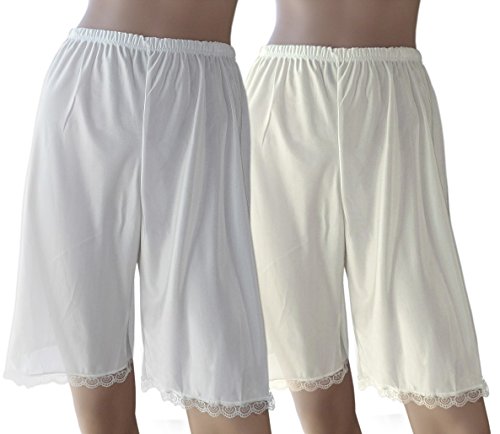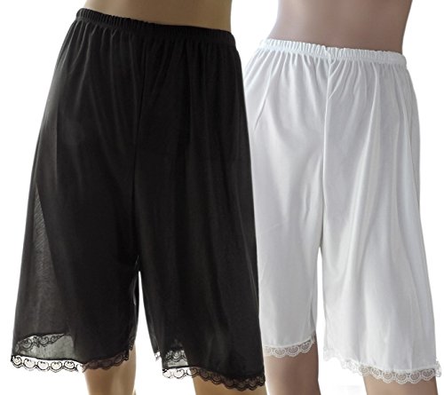 Binding : Apparel Product Description The perfect foundation for your wardrobe, this satiny pettipants / trousers slip features a comfortable elastic waistband and lace detail at the hem. Straight hemline hits above the knee. Slip length varies from 20" for size S, to 24" for size 4XL. 100% polyester. Machine wash cold. Non-chlorine bleach only. Tumble dry low. Sizes S to 4XL. Imported. 0