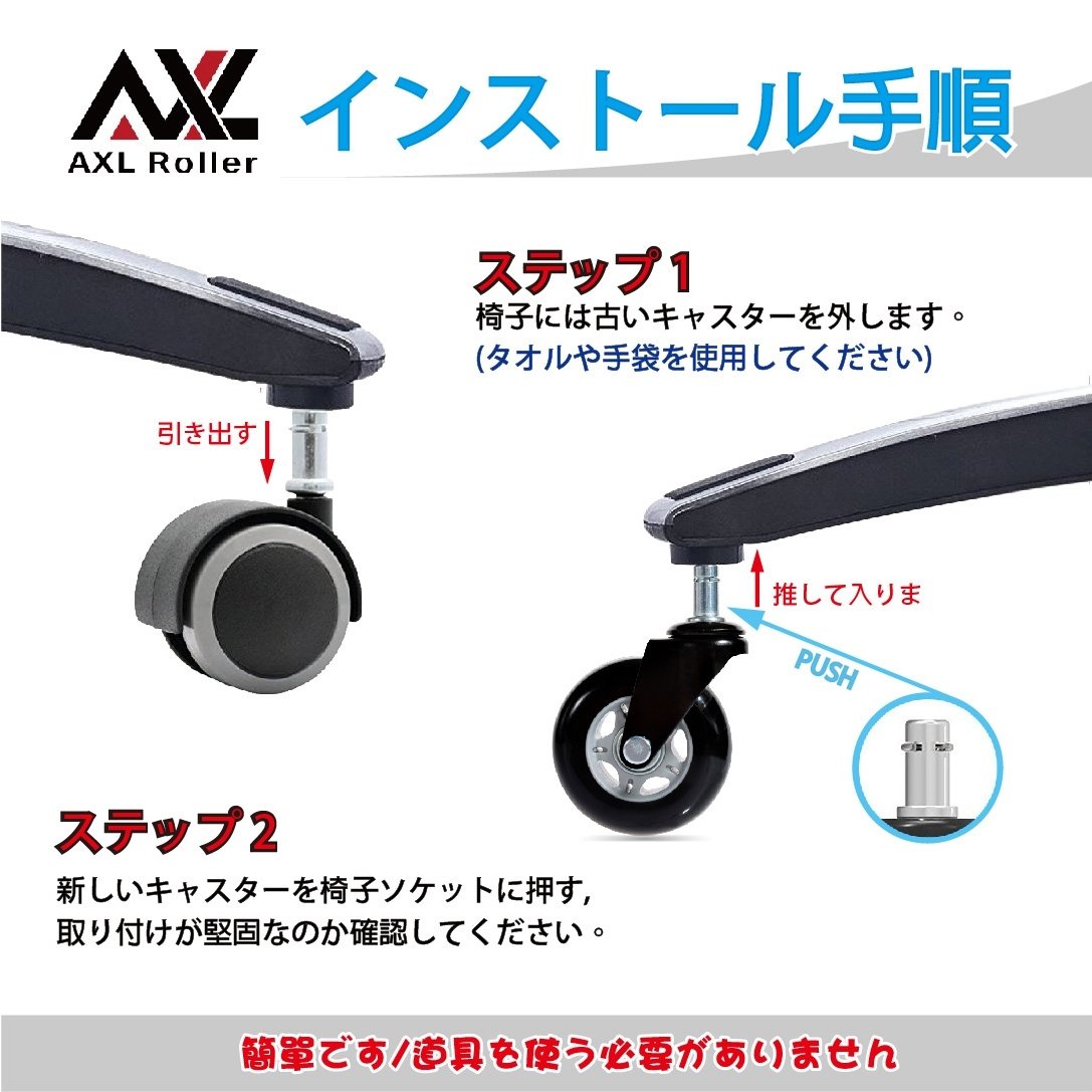 Easy installation method: Please forcibly pull out the original chair casters and put a new caster in the socket.