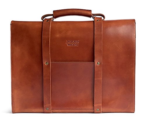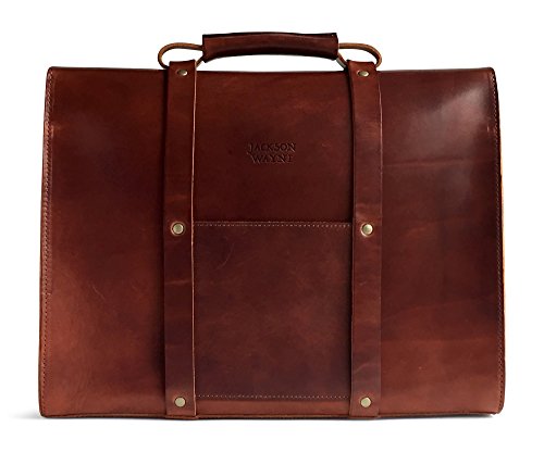 -. Brand : Jackson Wayne -. Department : unisex-adult (lage only) -. Feature : Thick 8 oz. full grain vegetable tanned American harness leather; 3 times thicker than most mass market bags / Unlined, finished leather interior; no cheap linings that will rip; rich character & smell of real leather / Antique brass hardware throughout for durability and classic aesthetic appeal / Heavy gauge bonded nylon thread for long term durability; stronger than polyester & cotton thread used in most bags / Lifetime Warranty; Dimensions: 12" (H) x 16" (W) x 5.25" (D) -. ProductGroup : Apparel -. ProductTypeName : LAGE -. Size : One Size -. Title : Jackson Wayne Vintage Full Grain Leather Briefcase Laptop Bag