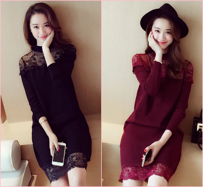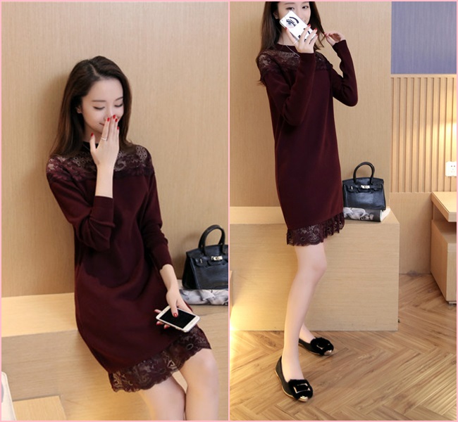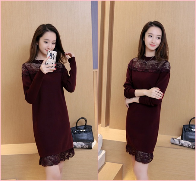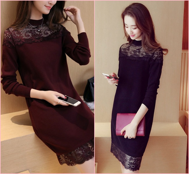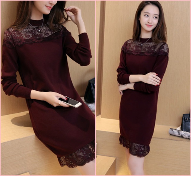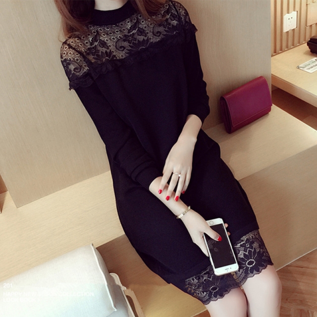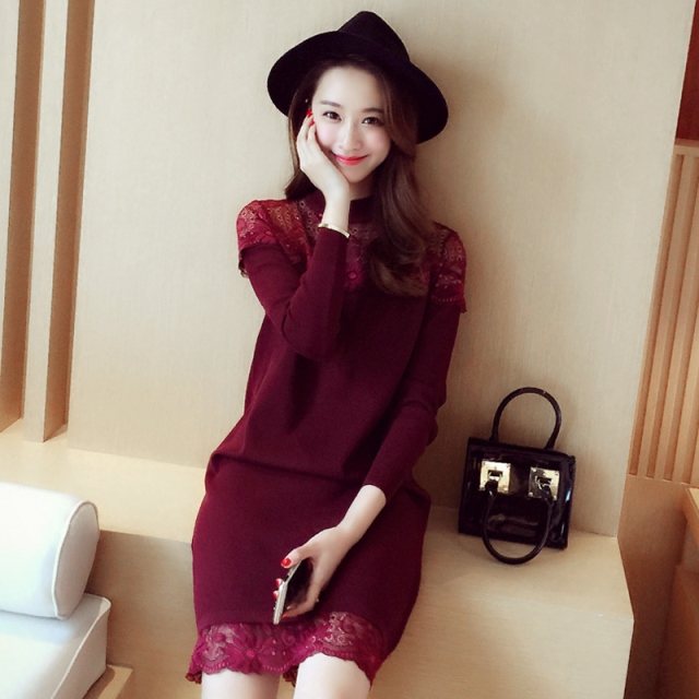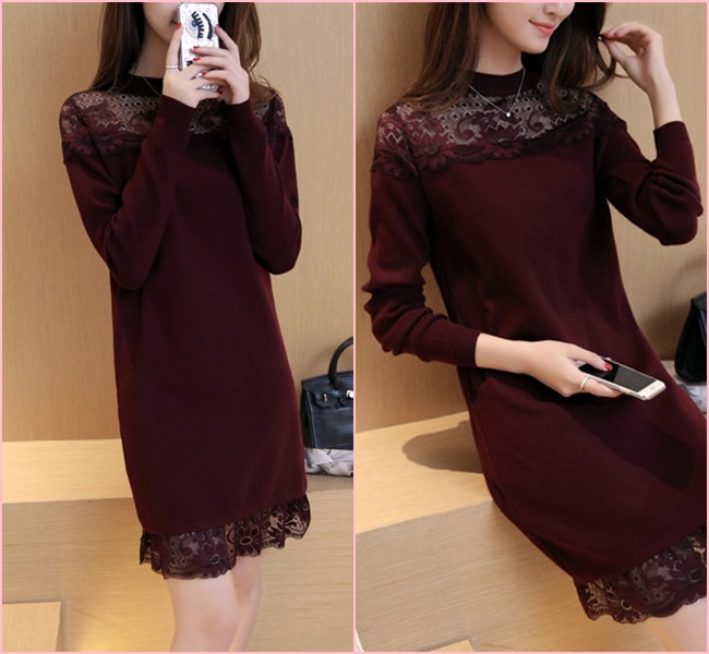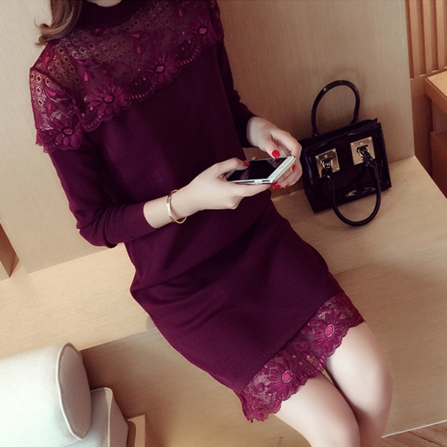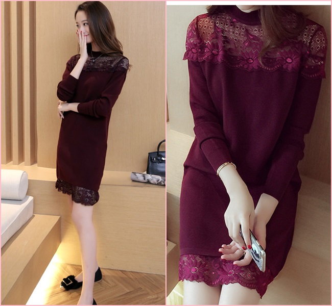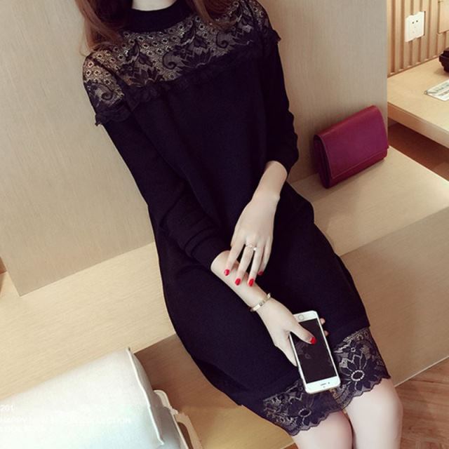 大きめサイズがうれしい上品な花柄ニットワンピース