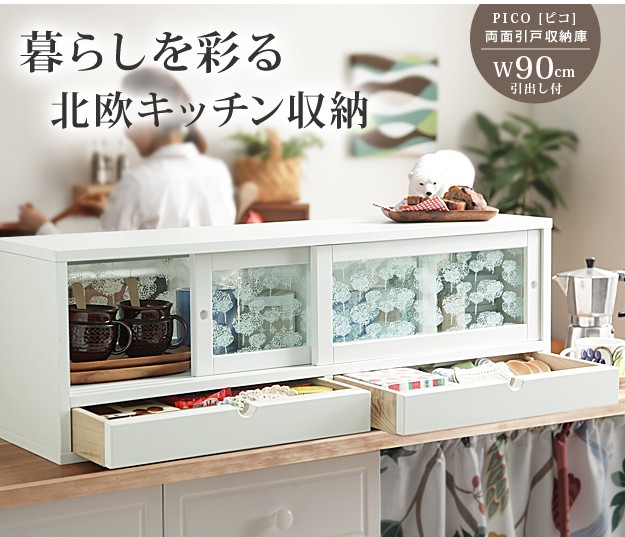 商品について:カウンター上に置いて両面から取り出し可能な引き戸収納庫。