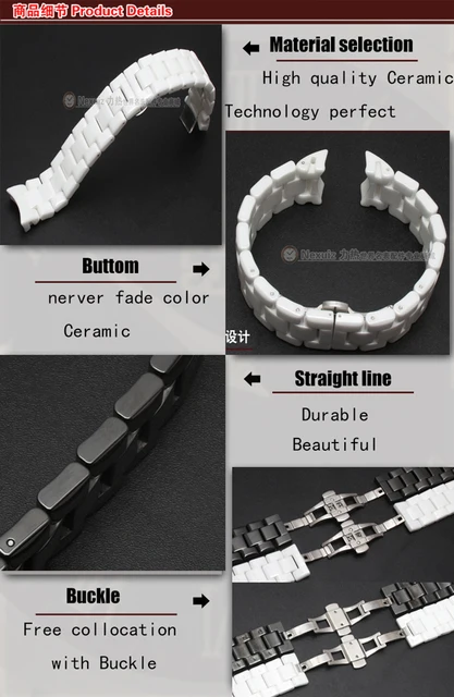 줄 22 미리메터, 높은 품질 세라믹 손목 시계 화이트 블랙 다이아몬드 시계 맞춤 AR1400 1403 1410 1442 남자 시계 팔찌
