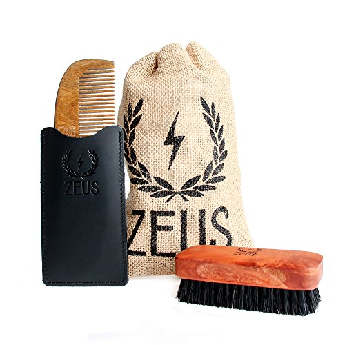Studio : ZEUS Publisher : ZEUS Binding : Misc. Product Description Know a long, thick beard in need of some training lessons? Look to the Zeus Organic Sandalwood Beard Comb and Zeus Pear Wood 100% Boar Bristle Beard Brush Set to provide those lessons for you! This set brings two of our best tools to the table. First, the Zeus Organic Sandalwood Beard Comb features medium teeth ready to take on the thickest of beards! Its all-natural Sandalwood construction leaves a subtle woodsy scent behind while protecting against static and breakage. This comb also comes with a protective leather sheath for storage and travel. When in need of a better grip, pick up the Zeus Pear Wood Boar Bristle Beard Brush. Its warp resistant handle has grooved sides to keep it in your hand while medium-firm, second-cut 100% boar bristles do all the hard work. Rounded bristle tips will penetrate the beard while remaining gentle and scratch-free on skin. 0