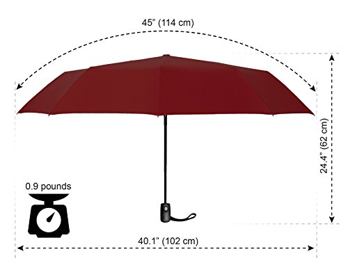 -. Brand : SWISH -. Department : unisex-adult (lage only) -. Feature : STURDY and WIND RESISTANT - The Strengthened Black Metal Shaft and 9 Reinforced Fiberglass Ribs (compared to the usual 6 or 8) enhance the umbrella's ability to flex, making it resistant to strong wind gusts (up to 55 mph). With the ability to withstand this force it will spare you from soaking clothes in heavy rain. / PORTABLE and LIGHTWEIGHT - You no longer have to choose between light craftsmanship and great style. The SWISH Travel Umbrella with a more durable 210T super water repellent fabric (compared to the usual 190T) and a slip resistant rubberized handle meets them both. It folds into a compact 12 inches, thus small enough to slip in any purse, bag or backpack. / EASY OPEN/ EASY CLOSE - Perfect for one handed operation. Simply OPEN and CLOSE the umbrella with a press of a button within just one second. Its auto OPEN and CLOSE feature combined with the large 40.1" diameter canopy provide instant protection against rain, be it light or heavy and burning sun. / BUILT TO LAST - A durable windproof umbrella can save you from all the mess of getting wet even in the worst London downpour. We engineer our umbrellas to be top quality from canopy to handle. That's why we use only High Quality Stainless Steel and Premium Fiberglass components: NO rust, NO breaking. With a 5000 times tested durability it will survive not only the elements but the test of time too. / ULTIMATE PROTECTION - Not just for yourself, but your wallet as well! We love this product, and we know you will too, but just in case it doesn't meet your needs, we offer a LIFETIME GUARANTEE! For the first 90 days, we offer a full refund if it doesn't meet your expectations, and a replacement warranty for the lifetime of your purchase! Better products, and the best in customer satisfaction. That's the SWISH way! -. ProductGroup : Apparel -. ProductTypeName : LAGE -. Size : One Size -. Title : Swish Wind Resistant Travel Umbrella - Auto Open Close Button for Easy Operation - Large Diameter Canopy with 210T Super Water Repellent Fabric