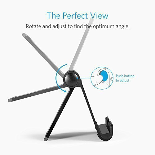 Every Possible Angle.The Anker Multi-Angle Stand, with an angle-precision of 1°, adjusts to virtually any angle. All it takes is the press of the button to adjust. What's more, the shelf design allows for viewing in both portrait and landscape positions.