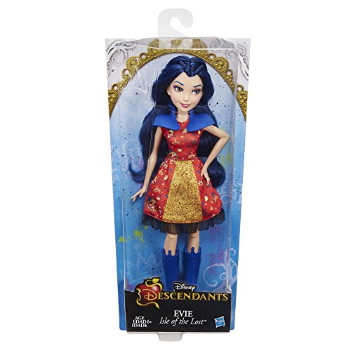 Evie of the Isle of the Lost is the daughter of the Evil Queen. She's more than what's in the mirror. This fashion doll, inspired by Evie, comes in a wickedly stylish outfit with a bold accessory and matching shoes. She's a beautiful addition to any girl's modern-day Disney adventures. Look for her fellow Disney Descendants dolls (each sold separately) to keep the fashion fun going. Copyright Disney Hasbro and all related terms are trademarks of Hasbro.Feature