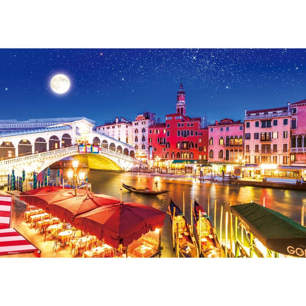 | ライトアップされたリアルト橋をゴンドラが行き交う(イタリア)。美しい絵画のような情景をジグソーパズルでお楽しみください。完成サイズ「38×26cm」とコンパクトなので、場所を取らずに1000ピースのパズルを楽しむことができます。 |