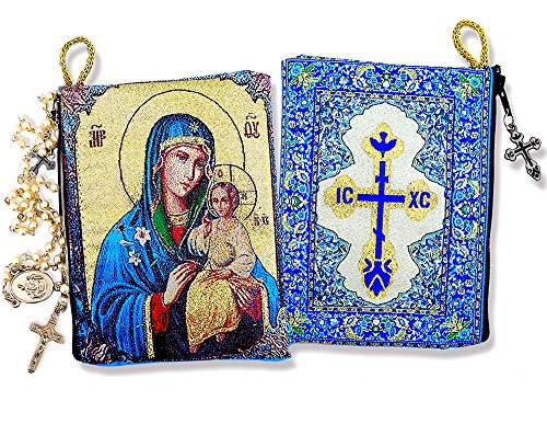 Religious Gift Blessed Virgin Mary Madonna and Child Icon Cloth Tapestry Rosary Zipper Close Pouch 5 3/8 Inch