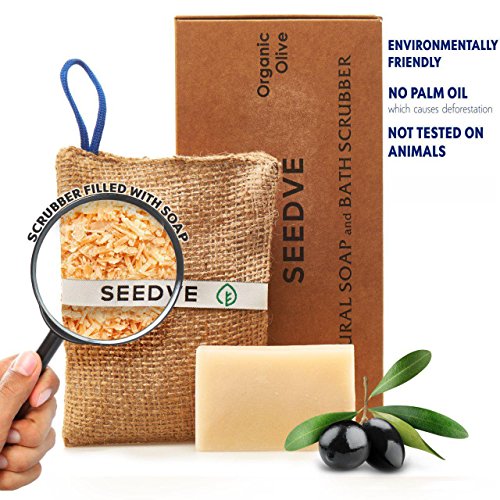 ⭐CLEANSING AND SKIN CARE IN ONE SET. SEEDVE has created original skin care product sets for men, women and children which consist of a natural soap bar (weight - 2.65 oz) for the cleaning and care of hands and skin, and a jute scrubber filled with ground organic soap (volume - 5.1 fluid ounces) for the cleaning and care of the body.