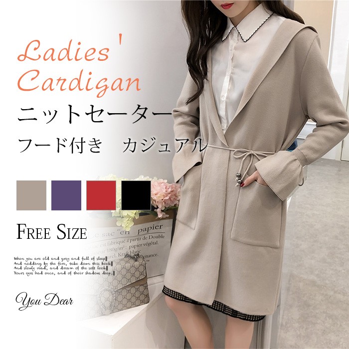 ★オシャレなニットカーディガンが登場!★両サイドにポケット付きで小物、携帯、財布など持ち可能★★長すぎず短すぎない丁度良い 着丈感で着回し力も抜群です!★フード付き&ベルト付き(調整できる)というデザイン大人のナチュラルムードを醸し出す♪★キーワード検索:ニットカーディガン コーディガン ロングカーディガン 体型カバー 洗える ニット ロングカーディガン ニットカーデ ロング丈 無地 長袖 厚手 レディース トップス ニット カーディガン 羽織り ニットソー Vネック ロングカーデ アウター ライトアウター ガウン シンプル フード付き カジュアル オフィス オフィス カジュアル 洗える ウォッシャブル 通勤 オフィス OL 秋 冬 通学 出かけ ★カラー:黒 ベージュ 紫 赤★サイズ(cm):フリーサイズ
