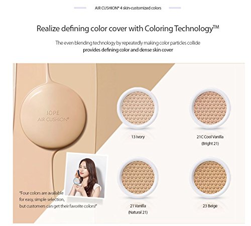2017 NEW IOPE AIR CUSHION - NATURAL No.21 (SPF 50+/PA+++) 30g(15g +Refill 15g)/1.05oz (VANILA NO.21)