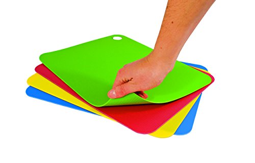 These Tovolo Flexible Cutting Mats are super sturdy and have a non-slip grip to keep the mats in place while in use. Each mat is color-coded to prevent cross-contamination. The thick, flexible cutting mats stand up to your knives and protect your counters. Each Tovolo Flexible Cutting Mat measures 11.5” x 15”, is BPA-free and dishwasher safe. The colors included in this set of 4 are: Sun Ray, Summer Sky, Lime and Raspberry Fizz. This mat is also available in a smaller, 7” x 11” size too.