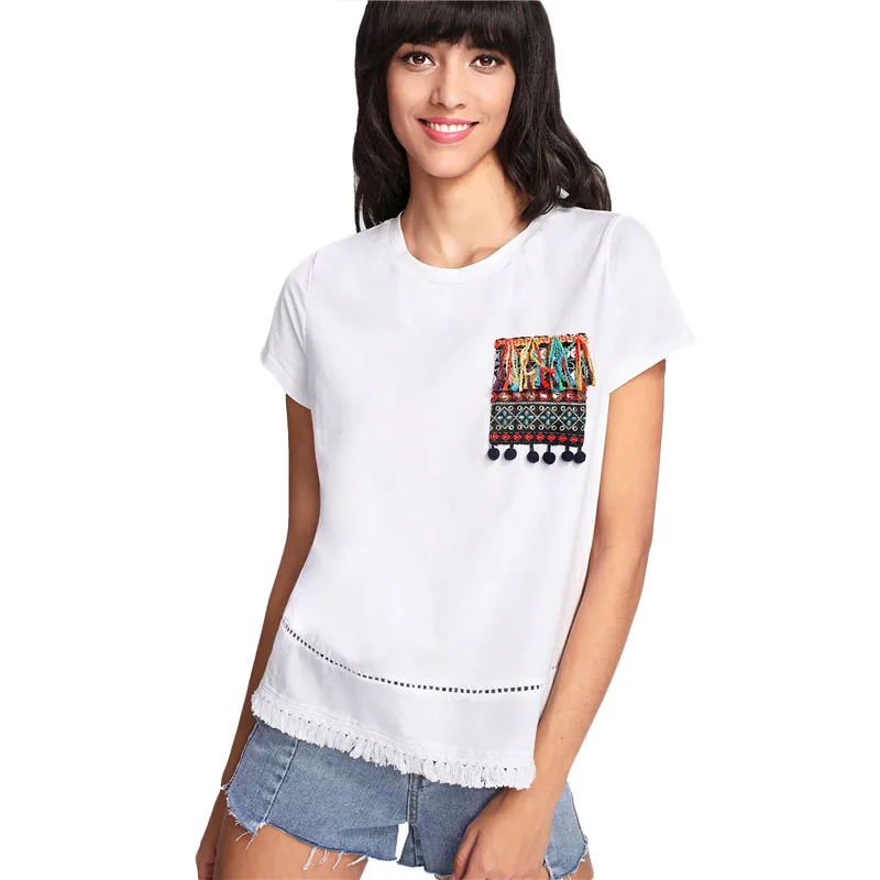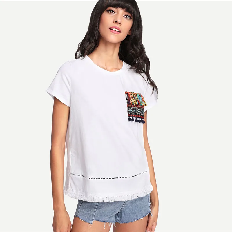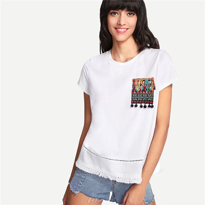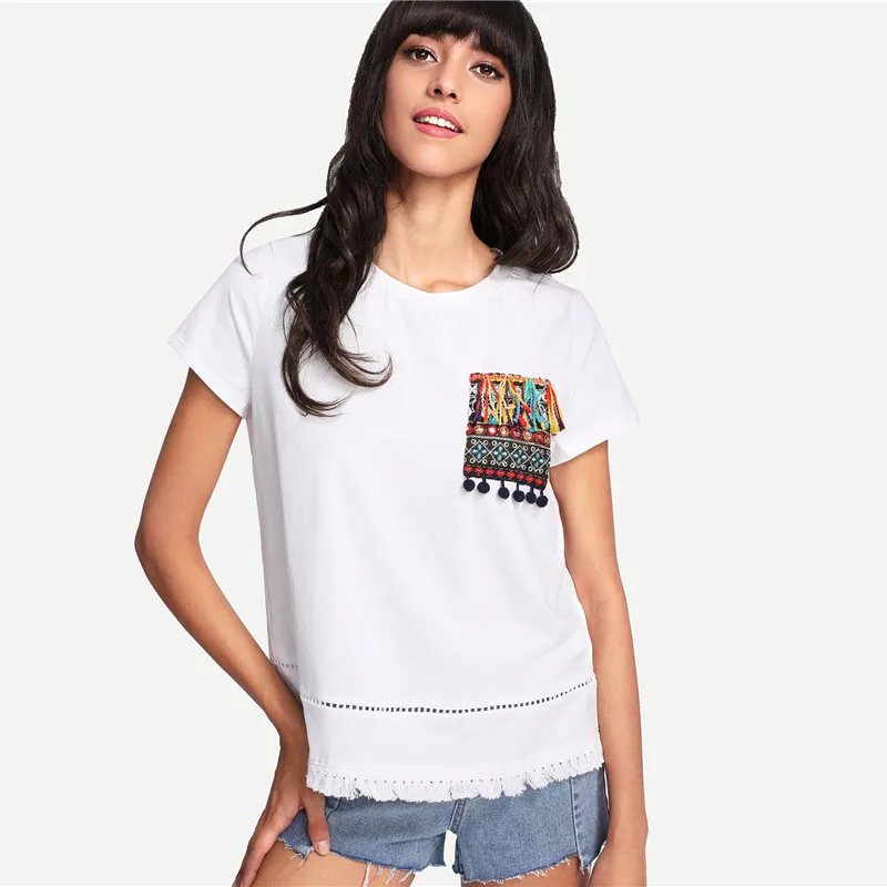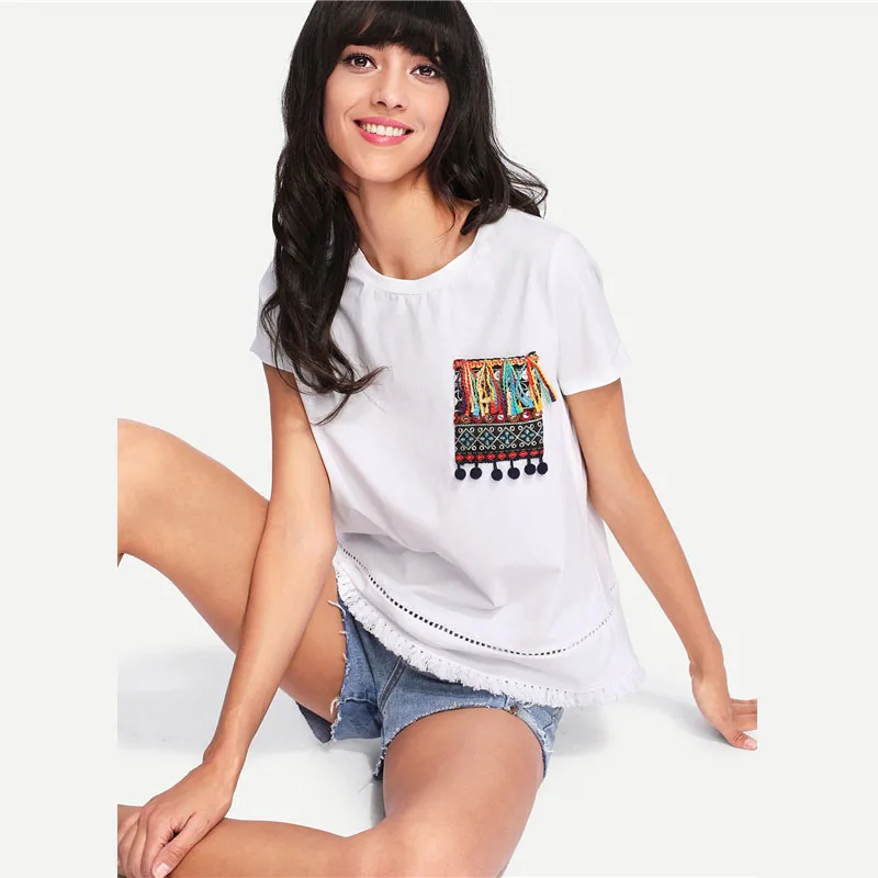 Decoration:Embroidery, Colorblock, Pocket, Fringe, Contrast Lace, Pom Pom