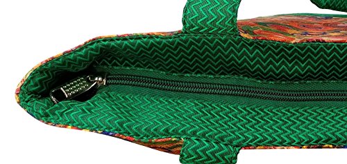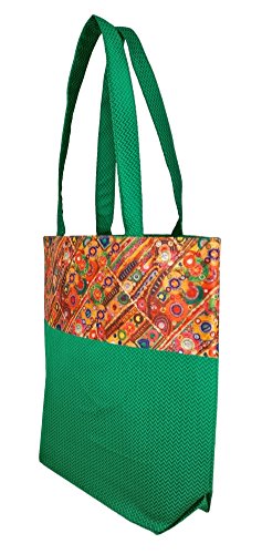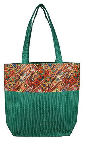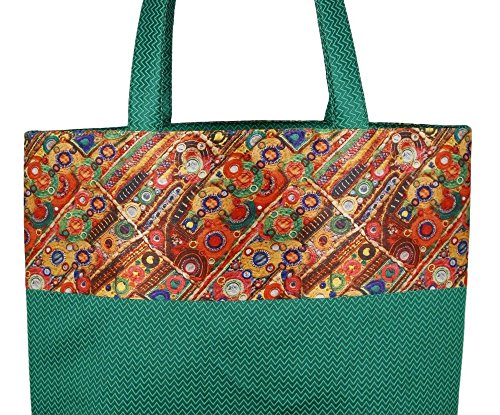 Digitally printed Brocade fashion bag 15 x 16 inch Faux Silk Dupion,GREEN,Totes