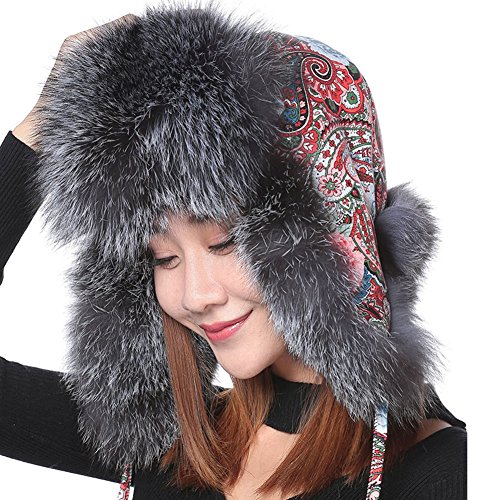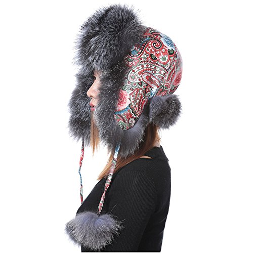 Binding : Apparel Product Description This bomber hat is made of real fox fur which is warm and light and genuine sheep leather which is windproof waterproof. The inner side of top is made of polyester jersey with cotton, which is warm and clean. The inner of earflap is fox fur, which keep your ear and face warm Outside is made of genuine sheep leather, you can easily handle it no matter raining or snowing. Furthermore, the colorful flower pattern will make you more fashionable and attractive when you with it. The fur maybe a little messy in transit, you can blow it with a hair dryer, the fur will be fluffy again. 0