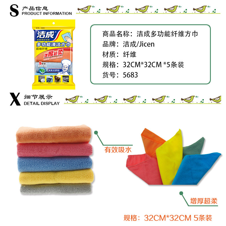 商品名称:洁成纤维方巾 清洁毛巾 抹布洗碗布32*32CM*5条