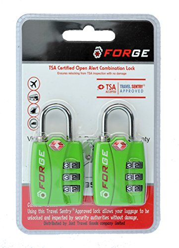 -. Brand : Forge -. Color : Green -. Department : unisex-adult -. EAN : 6359636938558 -. Feature : MOST DURABLE TSA RECOGNIZED AND ACCEPTED LOCK. Forge locks are designed from the ground up to be toughest lage locks around. Our special alloy lock bodies, hardened steel shackles and patented internal mechanisms can take such a pounding that we back our product up with an unconditional lifetime guarantee. If you can find a way to break these locks, we'll gladly refund or replace them. / ALWAYS RELOCKED, ALWAYS PROTECTED. Most TSA locks on the market do not need to be re-locked by a TSA agent after their inspection is completed. With our TSA lage lock the agent has to re-lock your suitcase to remove their key. With Forge you never worry about your suitcase locks being left open again. / KNOW IF YOU'VE BEEN INSPECTED. Know if an agent has opened your TSA approved lock immediately with Open Alert indicator. If an agent unlocks your suitcase, a red indicator will pop-up on your lock under the steel shackle. You'll know that your belongings were inspected and can double check that nothing is misplaced or missing while you're still at the airport. / NO HASSLE COMBINATION LOCKS. Set your own 3-digit combination with ease. It literally takes half a minute to enter your whatever combination you want with the detailed instructions and pictures included with the Forge TSA lock. / MANY USES WITH LOTS OF VARIETY. Forge travel locks can be used on a wide variety of items besides suitcases or lage. These combination locks can be used on a briefcase, gym locker, purse, backpack or laptop bag. -. Label : Forge -. Manufacturer : Forge -. ProductGroup : Apparel -. ProductTypeName : LAGE -. Publisher : Forge -. Studio : Forge -. Title : Forge TSA Locks 2 Pack - Open Alert Indicator, Alloy Body with