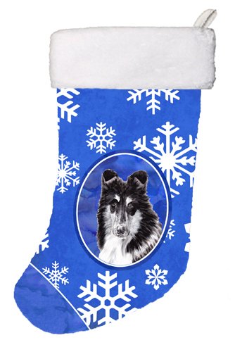 Caroline's Treasures Black and White Collie Winter Snowflakes Christmas Stocking, 11 x 18", Mulitcolor