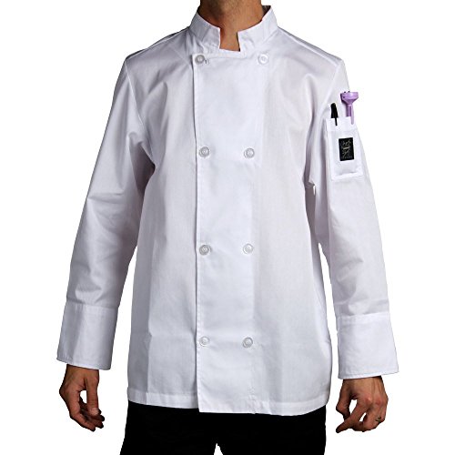 Chef Revival J049 24/7 Poly Cotton Blend Long Sleeve Unisex Cool Crew Jacket with Clear Pearl Bottons, X-Small, White