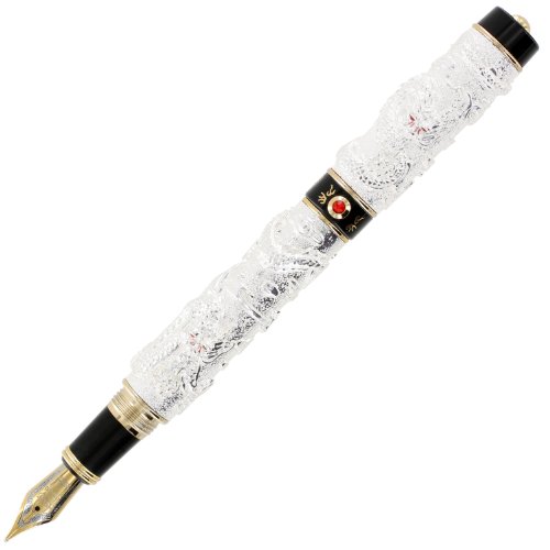 JinHao Deluxe Classic Chinese Dragon with Pearl Fountain Pen - Medium (Silver)