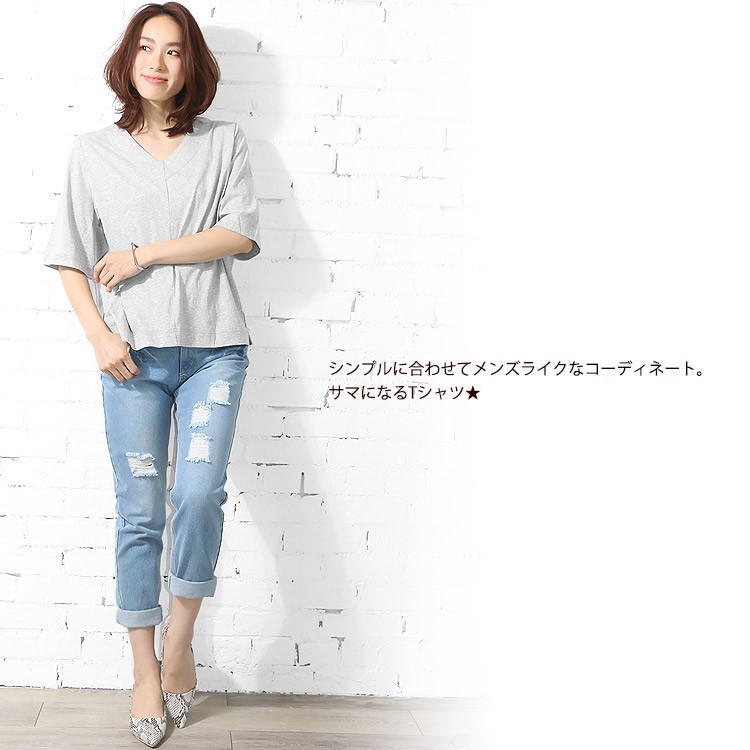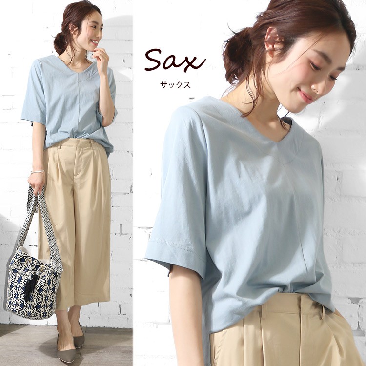商品名:Vネック5分袖プルオーバー