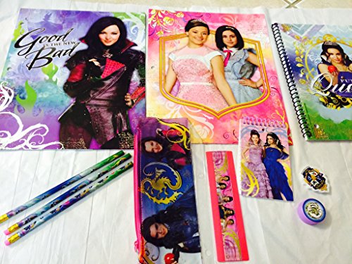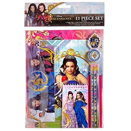 Disney Descendants School Supply 11 Piece Set ; Contains 2 Portfolio Folders, 1 Subject Notebook, Memo Pad, Eraser, Sharpener, 6 Inch Ruler, Pencil Pouch and 3 Pencils.