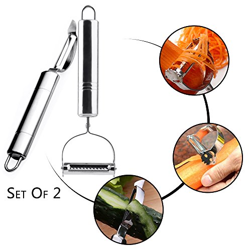 2PCS Vegetable & Fruit Peeler Set For Kitchen Gadgets & Tools , Stainless Steel Blades Premium Spiralizer , Rapid Apple Corer Mandoline Slicer Zester For Julienne , Potato , Carrot , Lemon Rind , Egg