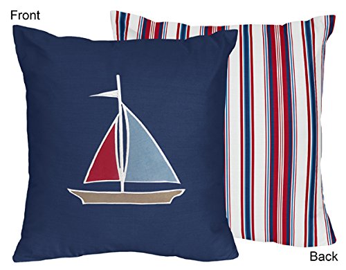 Sweet Jojo Designs Nautical Nights Sailboat and Red, White, and Blue Stripes Decorative Accent Throw Pillow