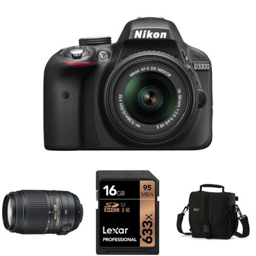 Capture every special moment in the lifelike quality it deserves--and have a great time doing it! With its included zoom lens, the new ultra-compact AF-S DX NIKKOR 18-55mm f/3.5-5.6G VR II, the D3300 is a small, easy to use HD-SLR. Capture beautiful 24.2-MP photos and 1080p Full HD videos with vibrant colors and softly blurred backgrounds, then share them instantly with your compatible smartphone and the optional WU-1a Wireless Adapter. Whether you"re creating high-resolution panoramas, adding fun special effects or recording dazzling HD video with sound, the D3300 will bring you endless joy, excitement and memories--just like the special moments of your life.Feature