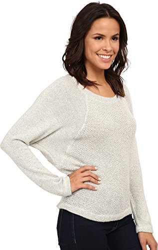 Chic whistler pullover features a loose knit bodice. Relaxed fit silhouette. Round neckline with rib trim. Long raglan sleeves. Subtle high-low hemline. 88% acrylic, 6% cotton, 6% polyester. Dry clean only. Made in the U.S.A. and Imported.