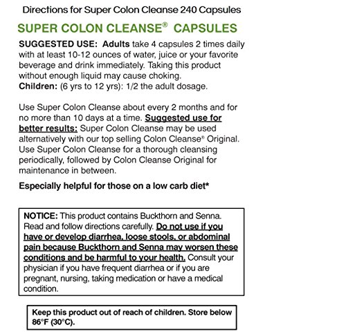 Why is the Colon important? The colon helps absorb vitamins, minerals, and nutrients. It also helps to rehydrate your body. However, what we most commonly associate the colon with is waste elimination. Many things must happen simultaneously for your body to move waste through nearly 15 feet of intestine, absorb nutrients, and rehydrate to allow for gentle waste elimination. Without a healthy functioning colon, waste builds up within the colon, inhibiting its ability to function properly. How can you help your Colon? Super Colon Cleanse was designed with the philosophy that your colon should be thoroughly cleansed every couple of months. Poor diet, environmental toxins, alcohol, etc… all contribute to limiting your body’s ability to manage waste and absorb nutrients effectively. Super Colon Cleanse utilizes a blend of 9 different nourishing herbs as well as good bacteria to help support the total digestive process.* Yes, it works! One of the main ingredients in Super Colon Cleanse is Senna Leaf. Senna leaf is a stimulant that encourages Peristalsis, which is a series of contractions throughout the colon.* These contractions are necessary to move waste through the digestive system. Peristalsis occurs naturally; however, when it does not, build-up of fecal matter and occasional constipation can occur. The Senna leaf in Super Colon Cleanse may encourage these contractions and help your digestive system eliminate waste effectively.* Super Colon Cleanse also gives you fiber from Psyllium Husk.* There are two different types of fiber, soluble and insoluble. Psyllium Husk is a source of soluble fiber that absorbs water in the intestine, creating a gel-like substance. This substance helps stool pass smoothly through the digestive tract and may help remove waste build-up.* But wait… there’s more! Bacteria! There is good bacteria and bad bacteria in your digestive system. Super Colon Cleanse has a bit of Acidophilus which is a good bacteria that may help replenish your digestive tract. Good bacteria plays a significant role in digesting foods, and may help eradicate unwanted, bad bacteria.* It may also help with problems such as gas and bloating.* Along with Senna leaf, Psyllium Husk and Acidophilus Super Colon Cleanse has other essential nourishing herbs; Fennel seed, Papaya leaf, Celery seed, Barberry root and Peppermint leaf.* These may have a soothing and relaxing effect on the digest system, which might help with small amounts of discomfort.* Buckthorn bark and Rosehips are added to assist with occasional constipation.* Together these ingredients work to provide you with a Clean Colon and may provide results you can feel.* Have no reservations! -Super Colon Cleanse is available in capsules and powder allowing you to choose what works best for you and your lifestyle. - 100% Money back guarantee. So, now what’s stopping you from your clean colon?Feature