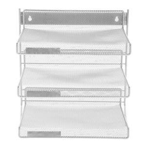 -. Feature : Counter top or wall mount / Three tiers save space on desk tops / Epoxy coated metal mesh is stylish