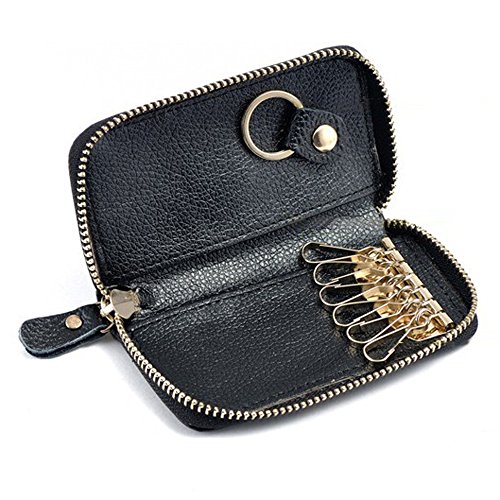 - Title : KLOUD City® Car Keychain Key Holder Bag Wallet Cover/Six Key Hook Zipper Case with Card Holder (Black)