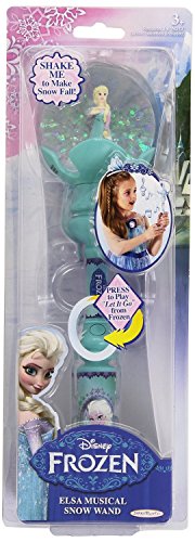 Bring the magic of Disney's Frozen to life with Elsa's musical snow wand. This beautiful wand features an Elsa figurine inside of a mini snow globe, on top of a beautiful wand. Shake to watch the snow magically swirl around Elsa, then press the button to hear Elsa's beautiful song from the film.Feature