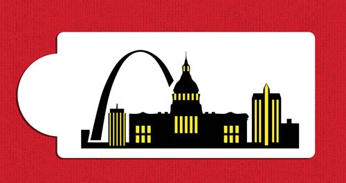 Studio : Designer Stencils Publisher : Designer Stencils Binding : Kitchen Product Description Use this silhouette stencil to create a detailed skyline of St Louis. Set includes three pieces: 1) The Skyline cutout; 2) The solid silhouette inside piece if you want to use that for a template for cutting your fondant or gumpaste; and 3) A second overlay stencil with the window and scene detail. Measures 3.75"H x 8.3"W. Made from durable 10 mil food-grade plastic for repeated use. 0