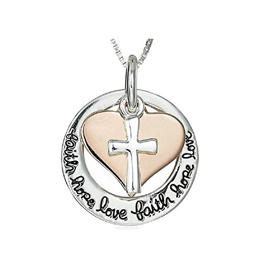 -. Title : Silver-Tone 'Faith Hope Love' Engraved Pendant Necklace 2.5cm Diameter With 18 Inch Chain Gold-Tone Heart Cross Jesus