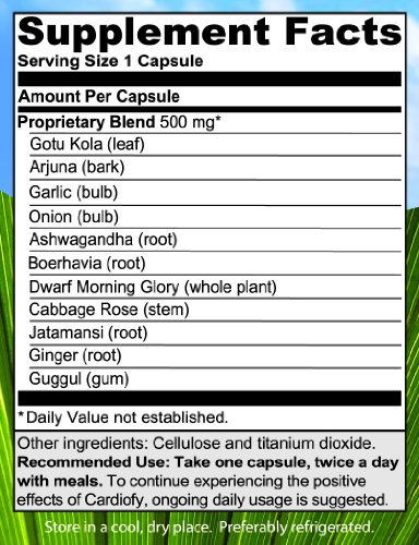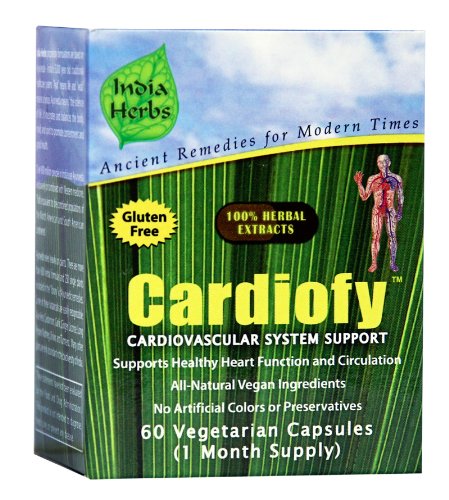Studio : India Herbs Publisher : India Herbs Binding : Health and Beauty Product Description Cardiofy contains 100% herbal extracts from 11 botanicals used for thousands of years in India's Traditional Medicine System (Ayurveda) to promote cardiovascular health. Our proprietary formulation delivers 406 natural phytonutrients (plant nutrients) that exert 611 synergistic activities on your body to bolster cardiovascular health. 0