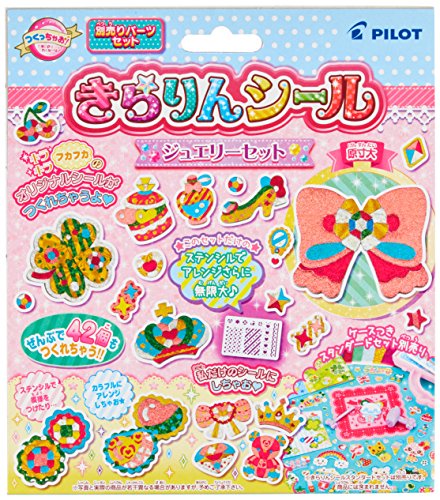키라링 씰「별매 파트세트」 쥬얼리 모티브의 조금 어른스럽다디자인. ●베이스로 반짝반짝 씨트를 붙이는 것만으로,간단하게 씰을 만들 수 있습니다. ●템플릿을 사용해 모양을 만들 수도 있습니다. 【세트내용】베이스 씰2매,반짝반짝 씨트8매,템플릿1매 ■케이스크기:160×180×10mm ■대상 연령:6 재이상