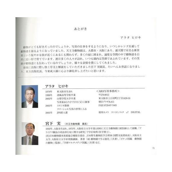 【商品説明】 定価(税込み):1,296円 値引き:10% OFF 日本で3番目に古い動物園、大阪の天王寺動物園で飼育されている動物たちをオールカラーで紹介する写真集。それぞれの動物の写真に、園長による簡潔な解説を添える。巻末に動物園および隣接する天王寺公園の案内図も付す。 バーゲンブック 新品 特価 格安 美術 工芸 写真集 写真家 飼育 写真 動物 日本 | |