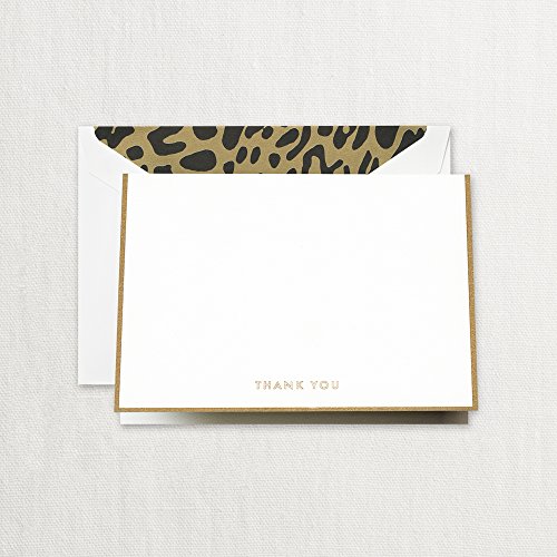 (Crane Co.)/Stationery Party Supplies/Stationery/DIRECT FROM USA/Crane Set of 10 Gold Bordered Thank You Note with Leopard Liner