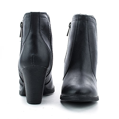 Binding : Apparel Product Description Bring out the cowgirl in you with these western inspired ankle boots, featuring an almond toe, contrast stitching, a side zipper for easy wear and closure, faux suede lining, a slightly padded insole for comfort, an approximate 0.25 inch platform, and an approximate 3.25 inch high faux wooden block heel. (Please note that these measurements are based on a size 6). Style fits true to size. Available in Black, Brown, Chestnut, etc. All man made materials. By Bamboo Shoes. 0