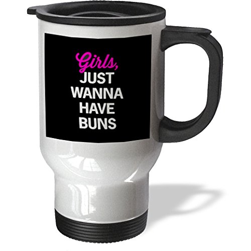 3dRose tm_193272_1 Girls Just Wanna Have Buns Black and Pink Travel Mug, 14-Ounce, Stainless Steel