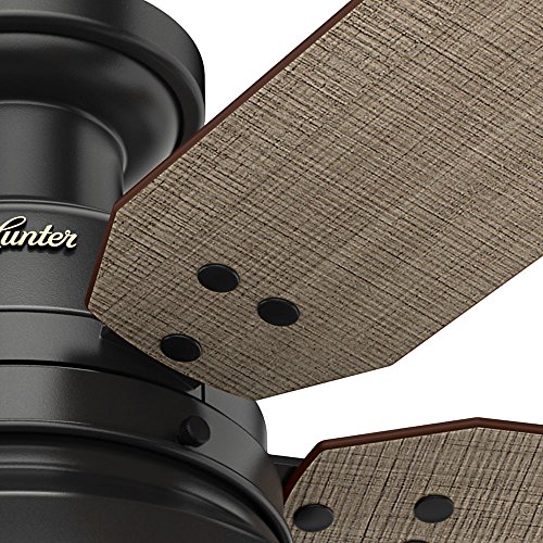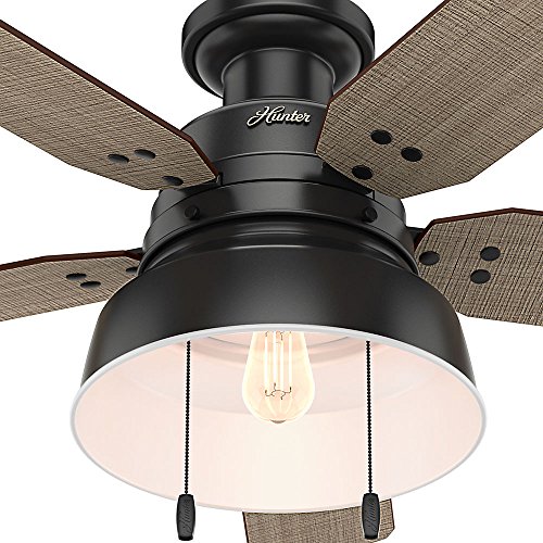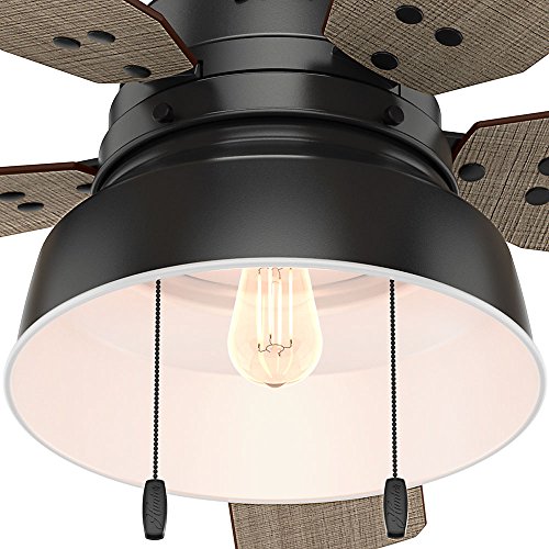 Industrial and rustic design come together on the Mill Valley with details including vintage style rivets securing the blades, coin-edge thumb screws and a barn style open hood light. Style meets performance with the Mill Valley’s white hood reflector that maximizes light from a vintage style LED Edison bulb. Damp rated and offered in a black housing finish, the Mill Valley will add a modern essence to your casual farmhouse living spaces and patios. The flushed mount makes this fan perfect for rooms with lower ceilings.Feature