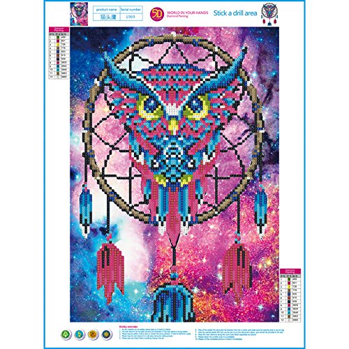 Diamond Painting Cross Stitch Kits - PigBoss Animal Diamond Embroidery Owl Dream Catcher Mosaic Pattern Gift (11.8 X 15.7 in)
