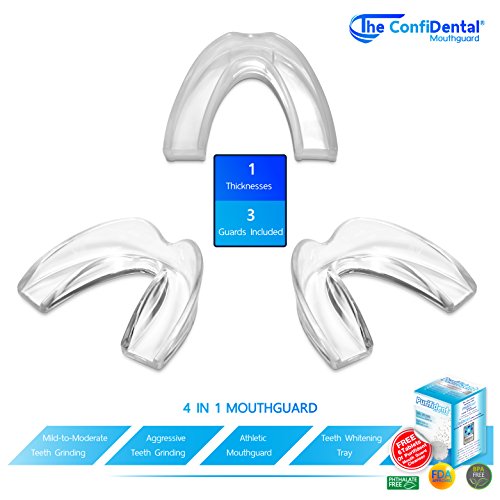 Studio : The ConfiDental Publisher : The ConfiDental Binding : Misc. Product Description The ConfiDental Dental Guard, Moldable Dental Protectors - Pack of 3 The ConfiDental Dental Guard is an excellent dental appliance made from high-quality premium dental grade materials. The guard is BPA-free and Phthalate-Free for added protection. Available in 3mm and 6mm thicknesses so that it can get used for multiple purposes. Our ConfiDental Dental Guards are ideal for teeth clenching, mild to moderate teeth grinding, aggressive teeth grinding, bruxism. Additionally, they can be used as athletic guard and teeth whitening tray. The ConfiDental Dental Guard is a superior product that offers users a variety of key benefits: - Teeth Protection - The ConfiDental Dental Guard, either in a 3mm or 6mm thicknesses and integrated design, absorbs and redistributes the force of an impact from teeth grinding and sporting activities, preventing damage to your teeth. - Customizable Fit - Made from a thermoplastic material, users can custom mold their guard for a perfect fit in the privacy of their home. - Maximum Comfort - The ConfiDental Dental Guard features a frenulum notch design that prevents irritation. - Tear Resistant and Durable - Easy to Clean and Reusable - Safe to Use - They are manufactured using BPA free and Phthalates free premium grade moldable material, for added safety and customer satisfaction. 6 Free Cleansing Tablets from Purifident: Protect Your Investment in the ConfiDental Dental Guard. Purifident Dental Appliance Cleansing and Deodorizing tablets are optimal for daily, effortless cleaning. Package Includes: - 2 pieces of 3mm thick ConfiDental Dental Guards - 1 pieces of 6mm thick ConfiDental Dental Guards - 6 cleansing tablets from Purifident - 1 Travel Hygiene Case - Step-by-step instructions for the molding and fitting process