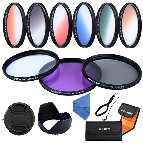 Kit Includes: 52MM K&F Concept Filter Kit (UV CPL FLD) + Graduated Orange Blue Grey Red Green Brown + Petal Lens Hood + Center Pinch Lens Cap/Cap keeper + Lens Cleaning Cloth + Filter Pouch