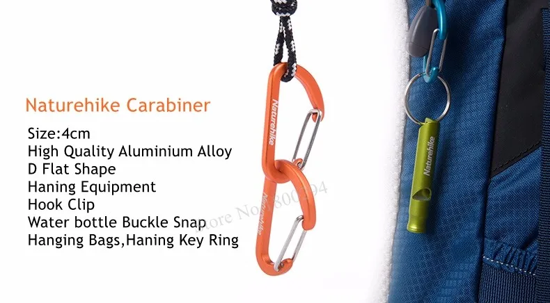 Brand Naturehike 16Pcs D-Shaped, Portable Aluminum Multifunction Outdoor Camping Buckle Travel Kit Survival Buckle,EDC Buckle, Knapsack buckle,