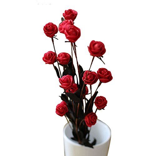 Eforstore 5Pcs Artificial Mini Rose for Wedding Home Party Decor Fake Silk Flower A Bouquet with 15 Heads (Red)