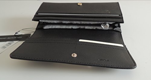 Product Description 10 credit card slots, Four slip pockets,Two sections for bills Measurements: 7.5" W x 4" H x 2" D One zipper closure compartment for coins The exterior has a zipper closure compartment in the back Gold-tone hardware, signature plaque at front 0
